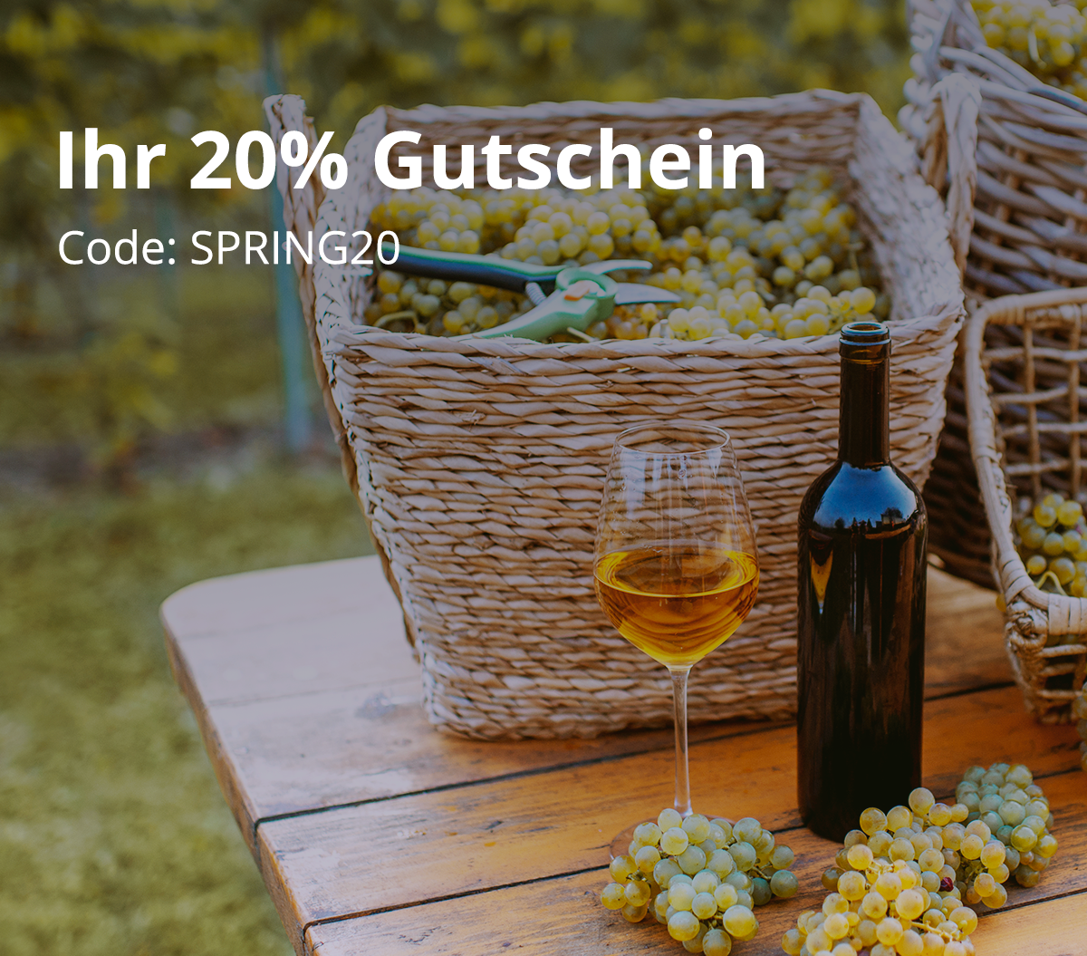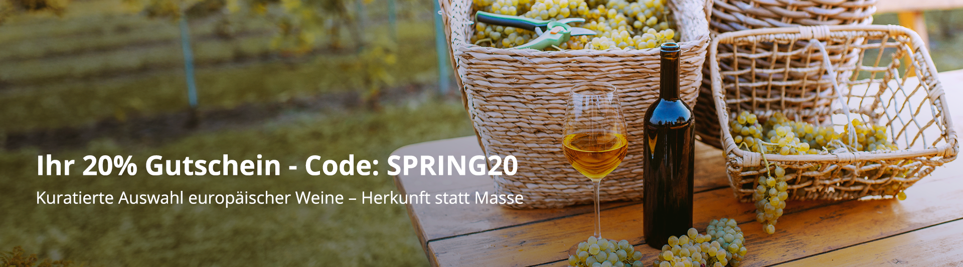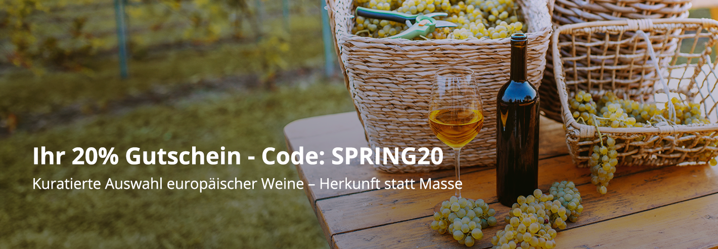 Machen Sie den Frühling zum Genussmoment: Mit dem Code SPRING20 sichern Sie sich bis zum 12.04.2026 20% Vorteil auf eine kuratierte Auswahl von 24 Artikeln. Darunter Pakete und Weine aus Deutschland, Frankreich, Italien und Spanien – eine in dieser Form einmalige Zusammenstellung feinster Winzerweine, die den Frühling ins Glas bringt.