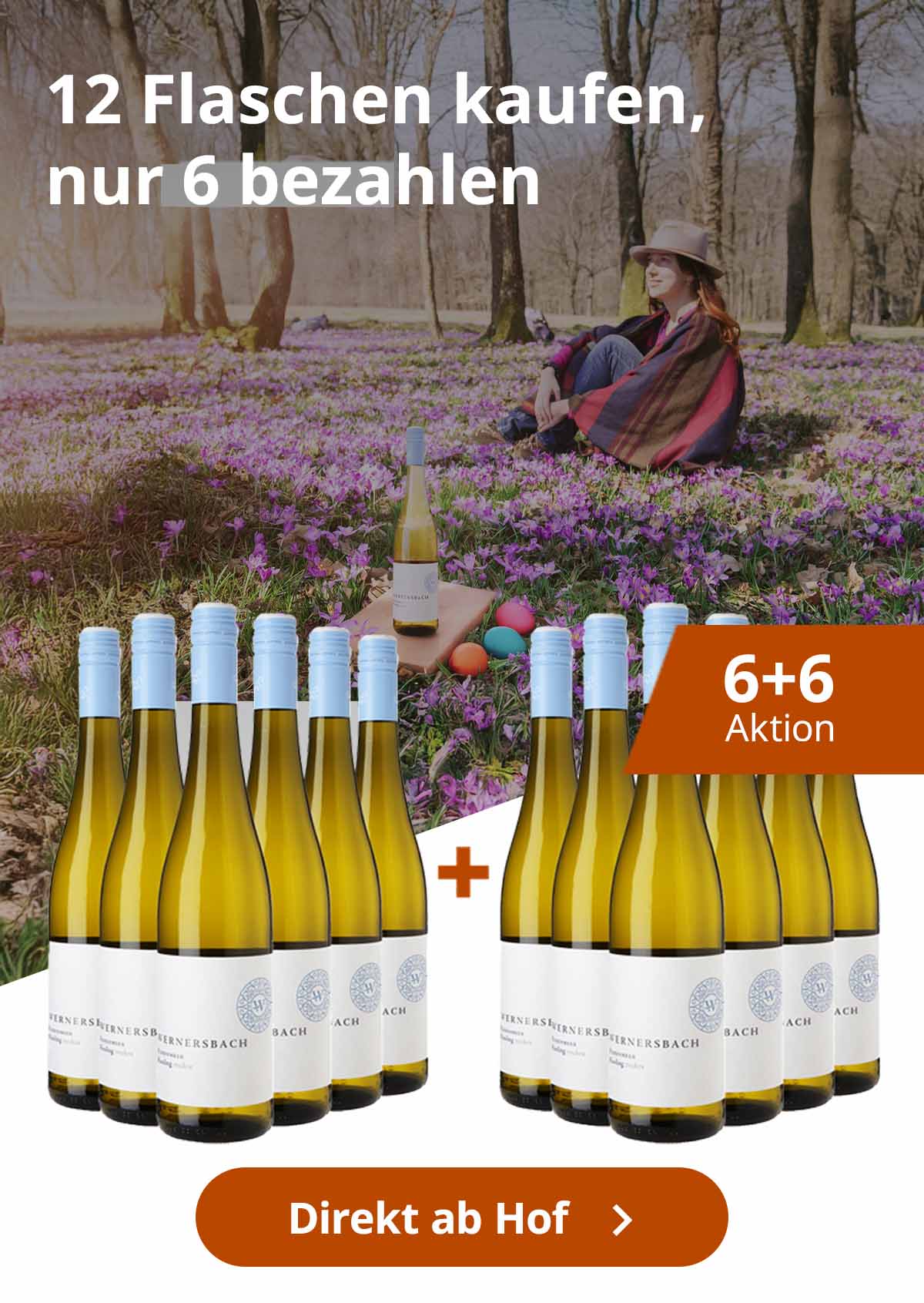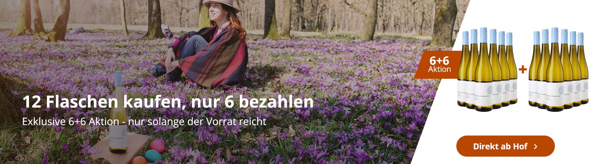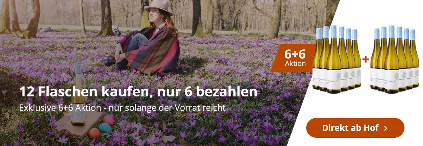 Entdecken Sie unsere exklusive 6+6-Aktion: Sie legen zwölf Flaschen desselben Weins in den Warenkorb – sechs davon schenkt Ihnen der Winzer.