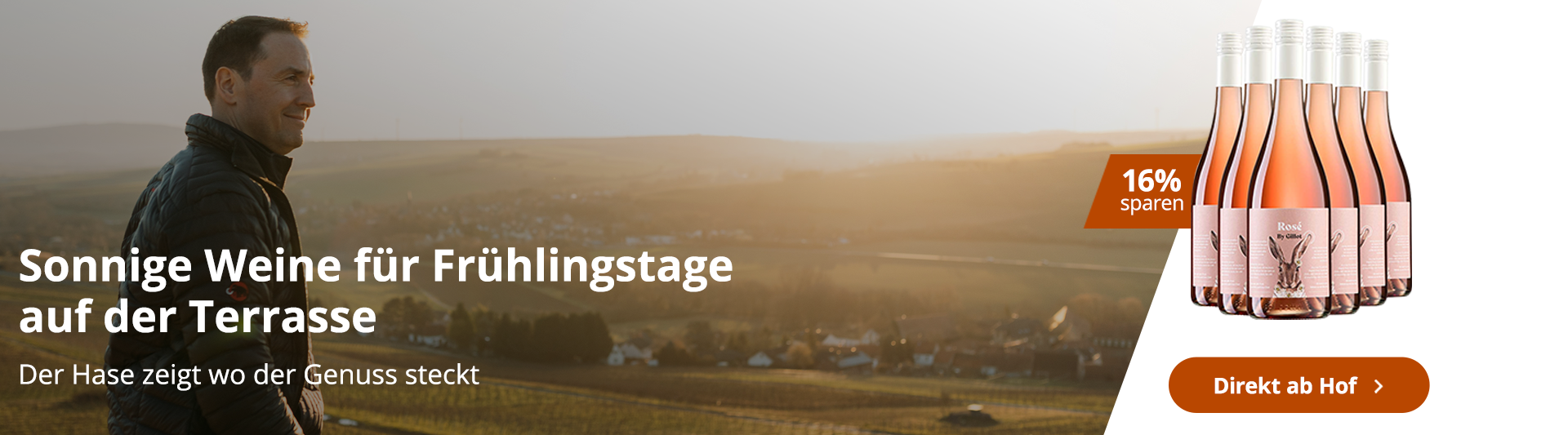 Die Temperaturen klettern, die Natur blüht auf - Zeit für das unvergleichlich schöne erste Glas Wein in der wärmendenFrühlingssonne! Also legen Sie die Sonnenbrille bereit und freuen Sie sich auf die Frühlingswein-Empfehlungen unserer Winzer! Diese ausgewählten Weine eignen sich hervorragend dafür, die leichten Sonnenstrahlen des Frühlings mit einem leichtem Glas Weißwein oder Roséwein zu genießen. Fruchtige Frische, Mineralität und wenig Alkohl - unsere Frühlingsweine sind die perfekten Begleiter für die ersten warmen Sonnenstrahlen.