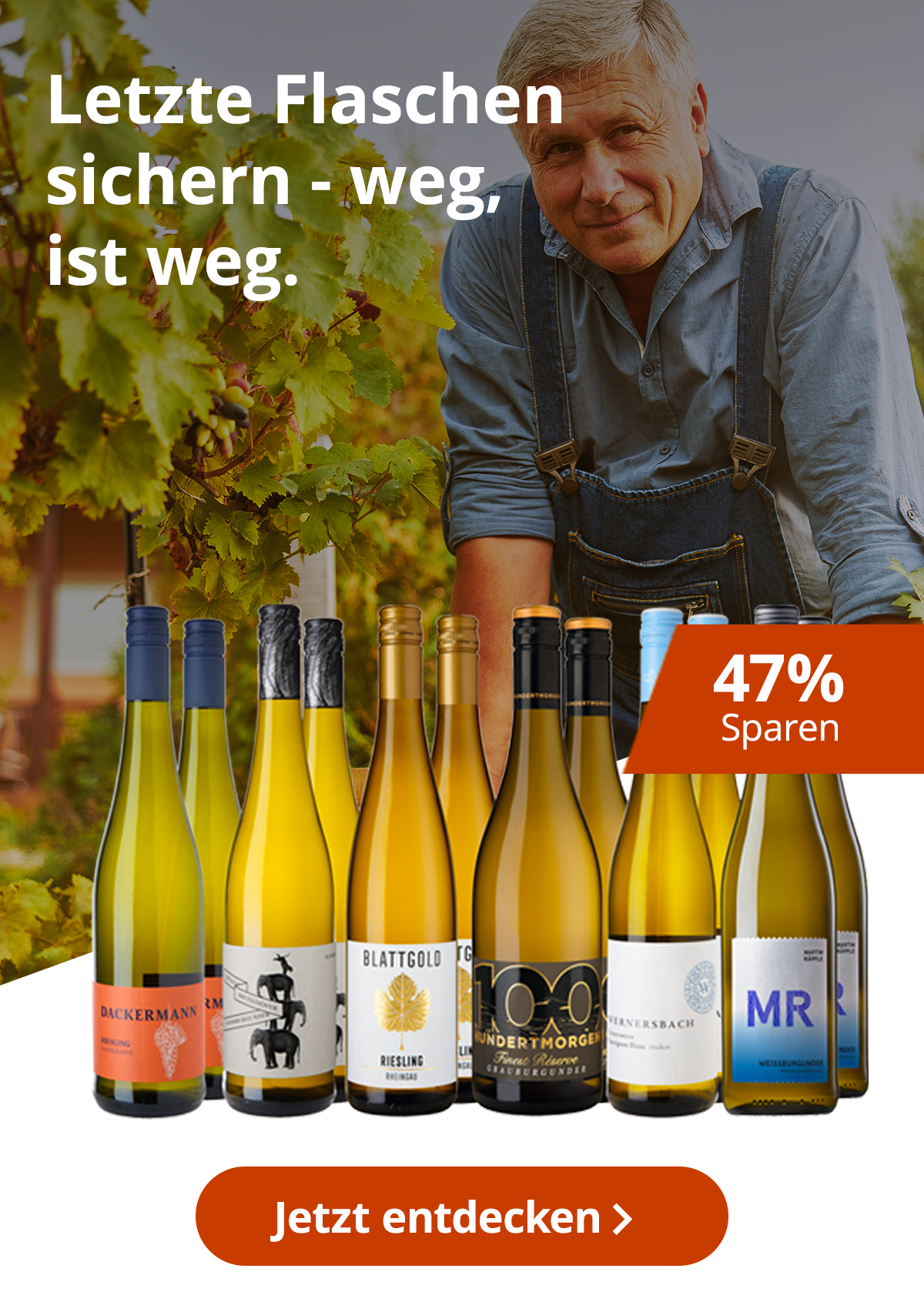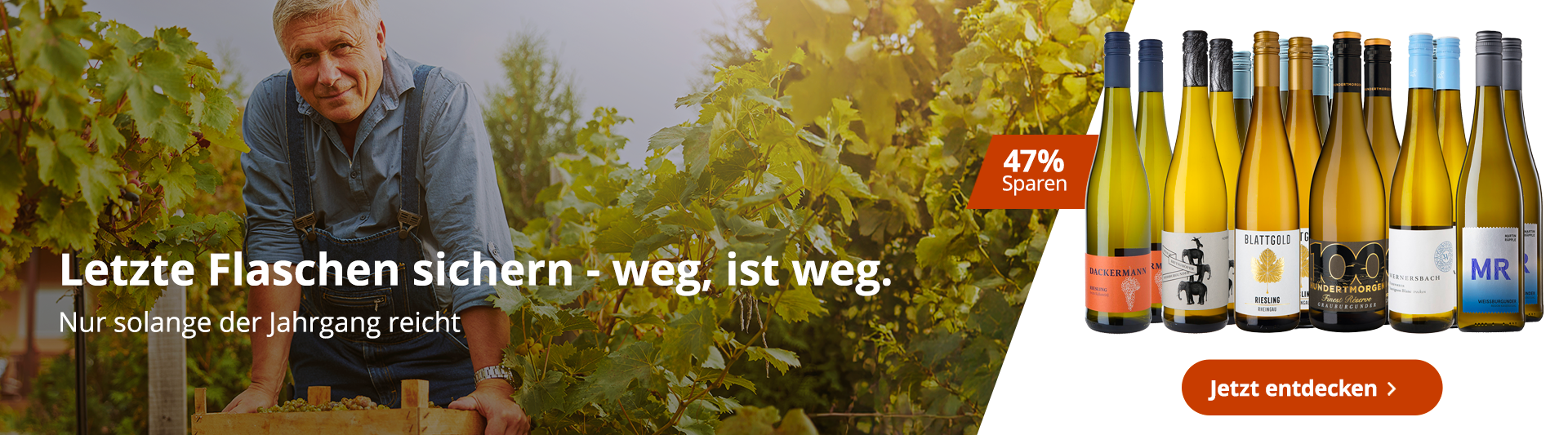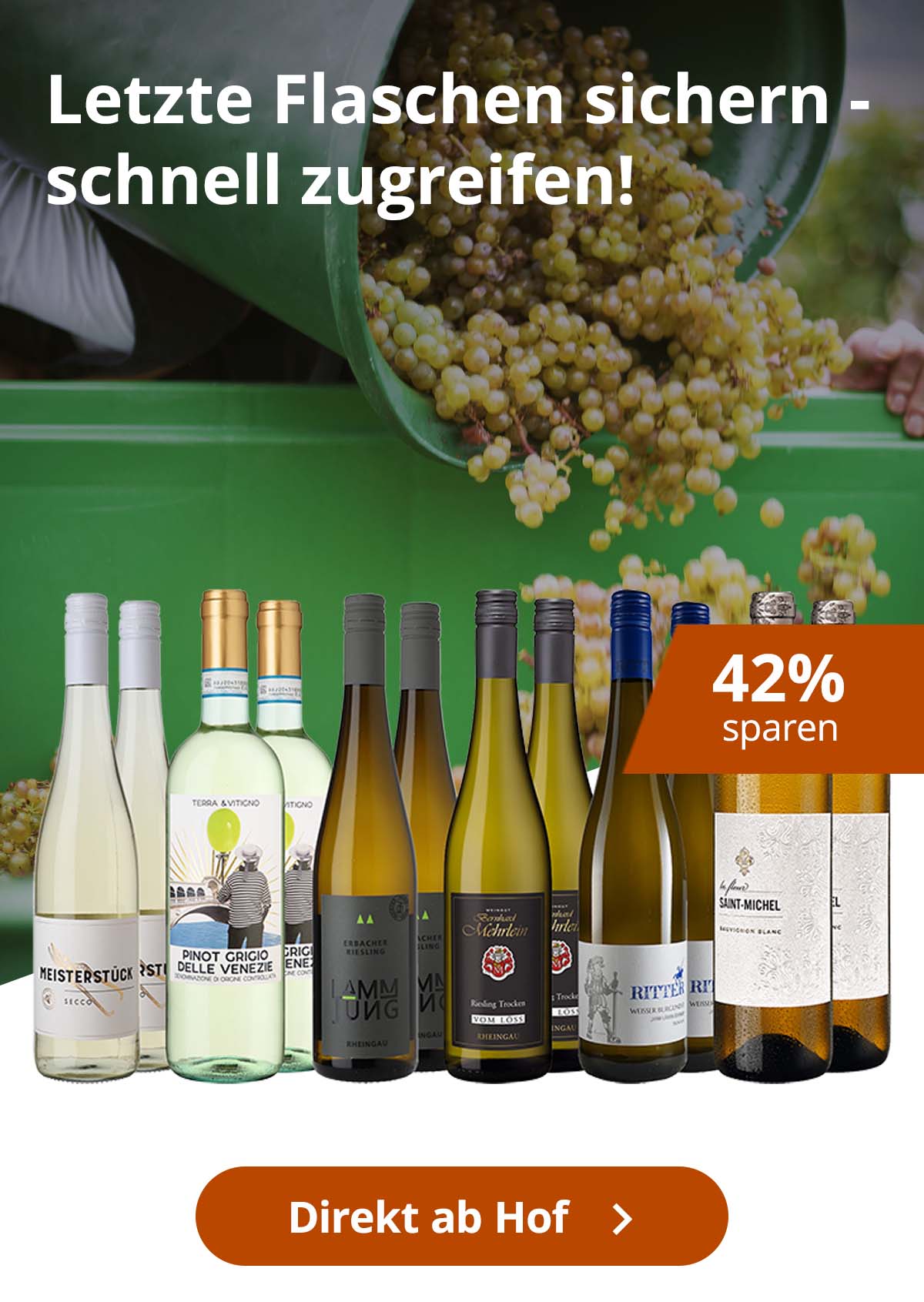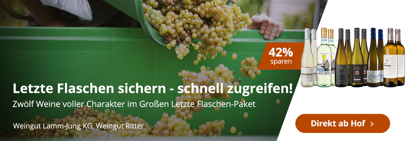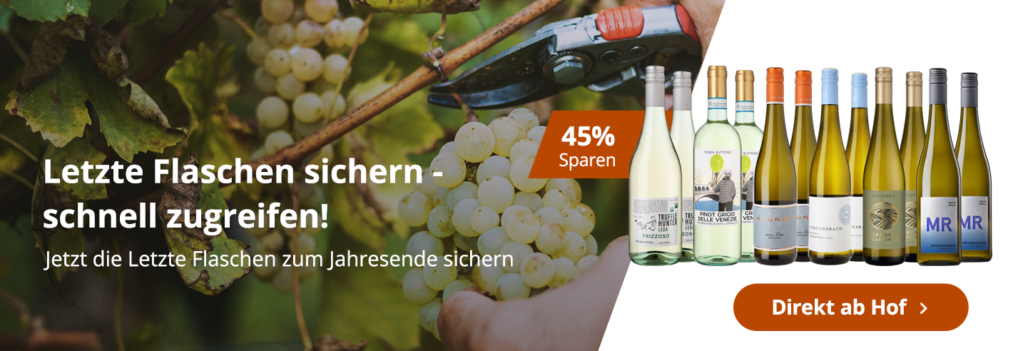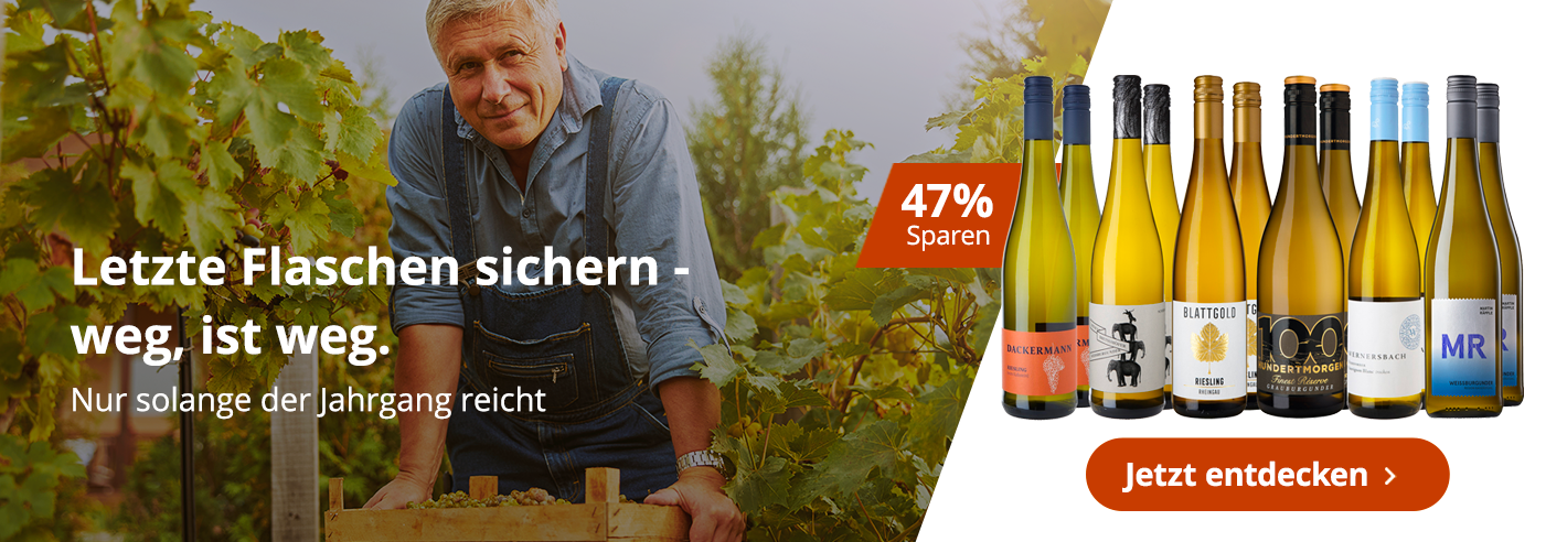 Unsere Winzer schaffen Platz im Keller und bieten die letzten Flaschen des vorherigen Jahrgangs deutlich reduziert an. Diese Weine befinden sich aktuell im optimalen Trinkfenster. Sichern Sie sich beliebte Weißweine, Rosés sowie Rotweine zum günstige Vorzugspreis - nur solange der Vorrat reicht.