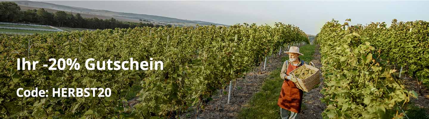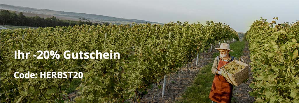 Freuen Sie sich im Aktionssortiment auf über 40 z.T. bereits reduzierte Weine , auf die Sie Ihren -20% Herbst-Gutschein einlösen können. Erzählen Sie gern auch Ihren Freunden vom Herbst-Gutschein, denn dieser ist nicht personengebunden und kann gleich mehrmals eingelöst werden.