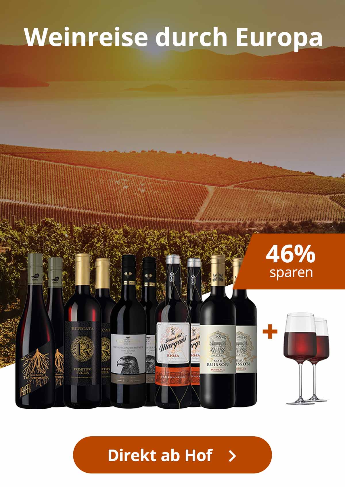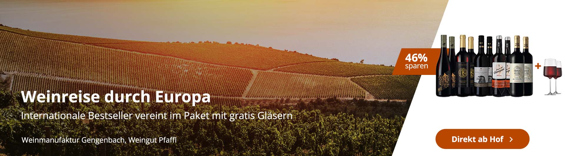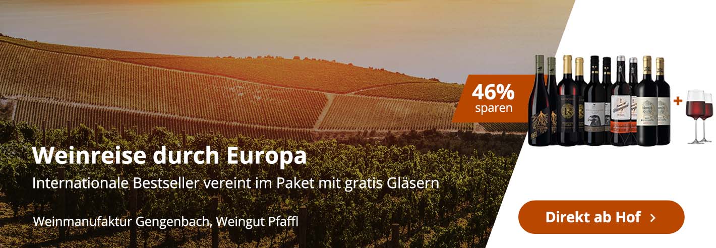 Jetzt entdecken: Die besten Angebote und Bestseller aus Italien, Österreich, Frankreich und Spanien – exklusiv bei WirWinzer. Freuen Sie sich auf hochbewertete Weine, prämierte Klassiker und gefragte Bestseller direkt vom Winzer. Ob kraftvoller Primitivo, eleganter Grüner Veltliner, feinster Bordeaux oder charaktervoller Tempranillo – wir haben die beliebtesten Weine Europas für Sie zusammengestellt. Top Angebote nur für kurze Zeit und nur solange der Vorrat reicht.