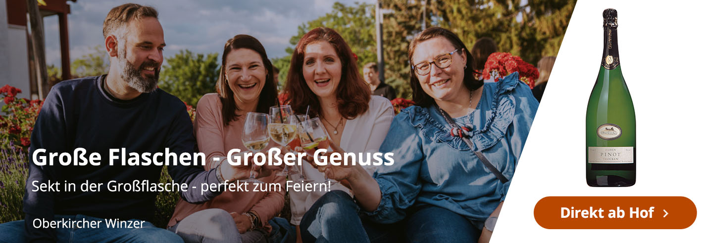 Immer häufiger finden sich zudem Roséweine in der Magnumflasche, da sie gekühlt auf der Terrasse oder bei Gartenfesten besonders gut zur Geltung kommen. Und nicht zu vergessen: Sekt und Schaumweinin großen Flaschen sorgen auf jedem Empfang für einen unvergesslichen Moment – sei es ein Winzersekt brut oder ein Riesling-Sekt extra trocken.