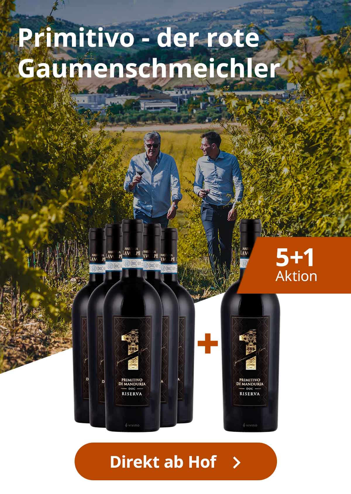 Ein beliebter Rotwein ist der Primitivo di Manduria. Er stammt aus der gleichnamigen Primitivo di Manduria DOC Region in Apulien und zeichnet sich durch seinen intensiven Geschmack und seine einzigartige Struktur aus.