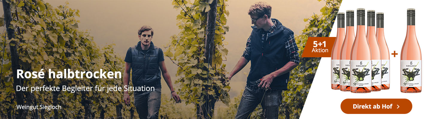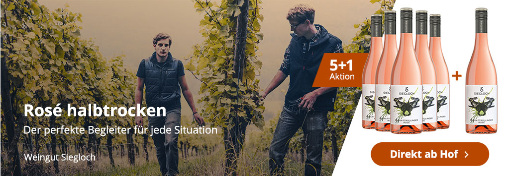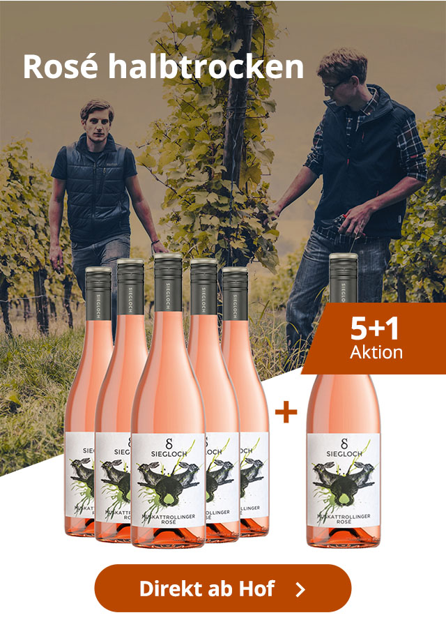 Was fehlt Ihnen noch um richtig in den Sommer starten zu können? Wie wäre es mit einem kraftvoll und frischem Schwarzriesling, der im Glas gut aussieht und perfekt in den Sommer passt. Das Wein...UVP 33,60 € 28,00 € 6,22 €/L (6 x 0,75 L) - 5+1 Paket Muskattrollinger Rosé - Weingut Siegloch5+1 AktionWeingut Siegloch5+1 Paket Muskattrollinger Rosé
