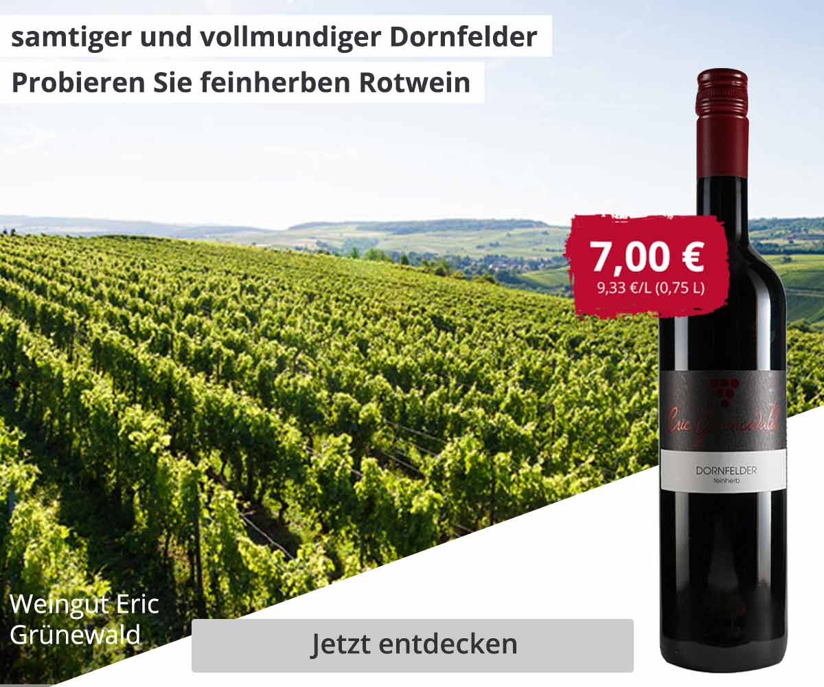 Ebenfalls aus dem Holzfass kommt eine kräftige beerige Cuvée ausCabernet Dorsa, Dornfelder und Spätburgunder. Die leichte Restsüße im Dornfelder macht den Wein zum idealen Begleiter beim Picknick oder in geselliger Runde.