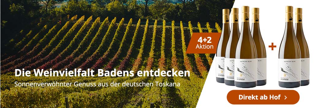 Badischer Wein kommt aus dem ‘Land des Burgunder’. Diese Bezeichnung kommt daher, dass Baden die optimalen klimatischen Voraussetzungen für die anspruchsvollen Burgunderreben bietet. Ein mildes Klima verbunden mit hervorragenden Böden bilden perfekte Wachstumsbedingungen für badische Weine, die viel Zuwendung und Sorgfalt von seinen Winzern fordert. Der rote Spätburgunder wird meist zu einem vollmundig und samtigen, in der Regel trockenen Rotwein verarbeitet. Badischer Rotwein erinnert an rote Früchte wie Erdbeere, Kirsche, Brombeere und Johannisbeere. Die wichtigsten Weißwein-Rebsorten für Wein aus Baden sind der Müller-Thurgau, der Grau- und Weißburgunder, der Riesling und besonders im Markgräflerland der Gutedel.