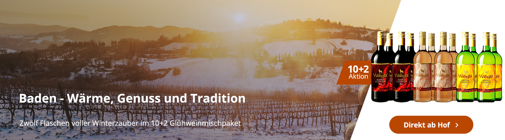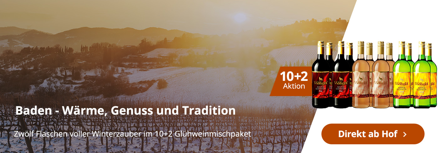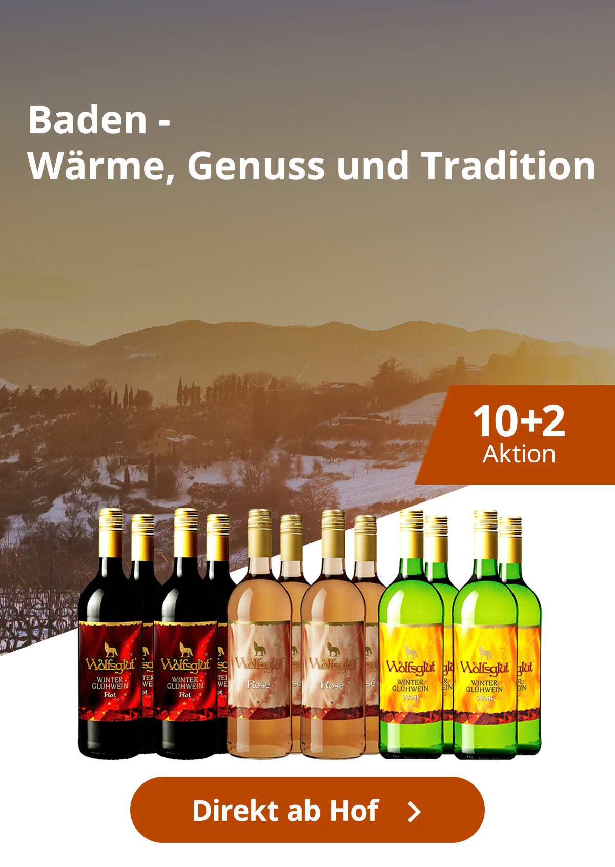 Thomas Weiler: "Lieben Sie Glühwein genauso wie wir? Sie erhalten zum Vorzugspreis je 3 Flaschen von unserem Winzerglühwein rot & weiß. Die perfekte Mischung und für jeden Geschmack ist etwas ...BadenUVP 35,70 € 29,75 € 4,96 €/L (6 x 1,0 L) - LUST AUF ROT feinherb Bio - Weingut RiegerWeingut RiegerLUST AUF ROT feinherb