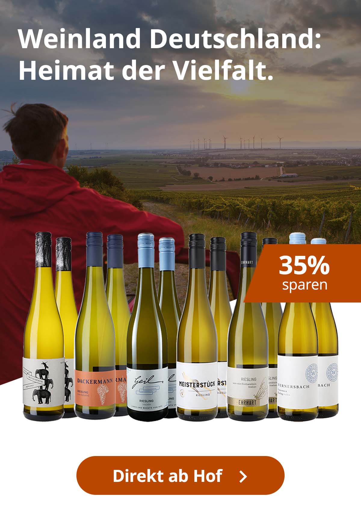 Bekannte Lagen für deutsche Weine sind zum Beispiel die Wehlener Sonnenuhr (Mosel), der Scharzhofberger (Saar), der Rüdesheimer Berg Schlossberg (Rheingau), der Würzburger Stein (Franken) oder das Forster Ungeheuer (Pfalz) – Namen, die für Herkunft und Charakter stehen und die Stilvielfalt des deutschen Weins besonders gut zeigen.