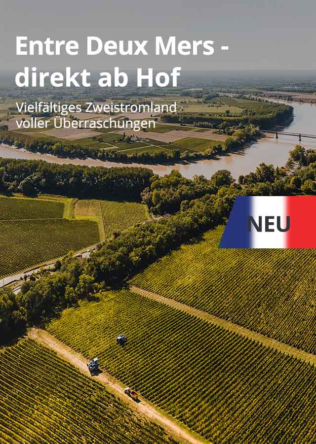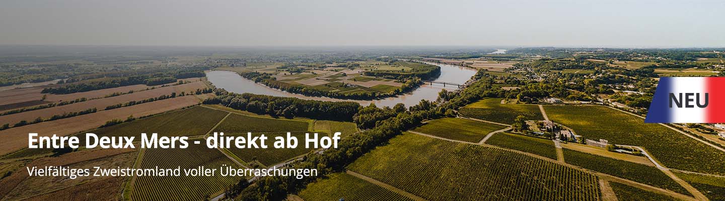 Entre Deux Mers ist die größte Appellation der französischen Weinregion Bordeaux. Das Anbaugebiet umfasst mit rund 23.000 Hektar Rebfläche über ein Viertel des Bordeaux (Bordelais). Der Name Entre Deux Mers stammt von der französichen Bezeichnung marée für Flut. Im Deutschen heißt es "zwischen den Meeren". Früher lag es wohl im Überschwemmungsgebiet, daher stammen noch die guten Böden. Die Ablagerungen der Flüsse Dordogne und Garonne, die zum Meer hin strömen hinterließen ton-, lehm-, sand- und kieshaltige Böden. Sie wirken wie ein Binnenmeer, da sie unter dem Einfluss der Gezeiten stehen. Ursprünglich war das Gebiet Entre Deux Mers prädestiniert für den Weißweinanbau. Durch die steigende Nachfrage nach Rotwein werden hier nun zu 75% rote Sorten kultiviert, die als "Bordeaux" verkauft werden.