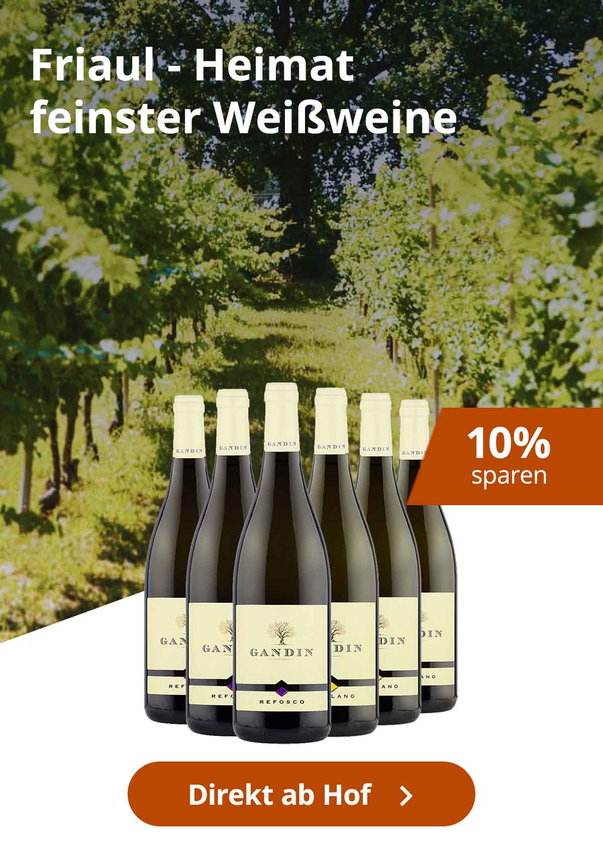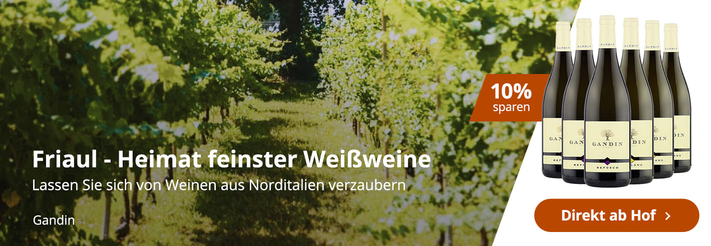 Die Weingebaugebiete des Friauls sind so einzigartig wie die Weine selbst. Vom weltbekanntenProsecco DOC Wein, über Friuli Venezia Giulia IGP Wein, bis hin zu unbekannteren Weinbaugebieten wie dem Friuli Isonzo DOCist alles dabei. Wein aus dem Friaul, oder Wein aus Friuli zu kaufen ist über WirWinzer besonders einfach. Wir liefern ihnen die Weine direkt ab Hof und ermöglichen ihnen somit eine unkomplizierte Lieferung von Friuli Weinen direkt nach Hause. Profitieren Sie noch heute von der riesigen Auswahl an Friuli, Friaul Weinen.
