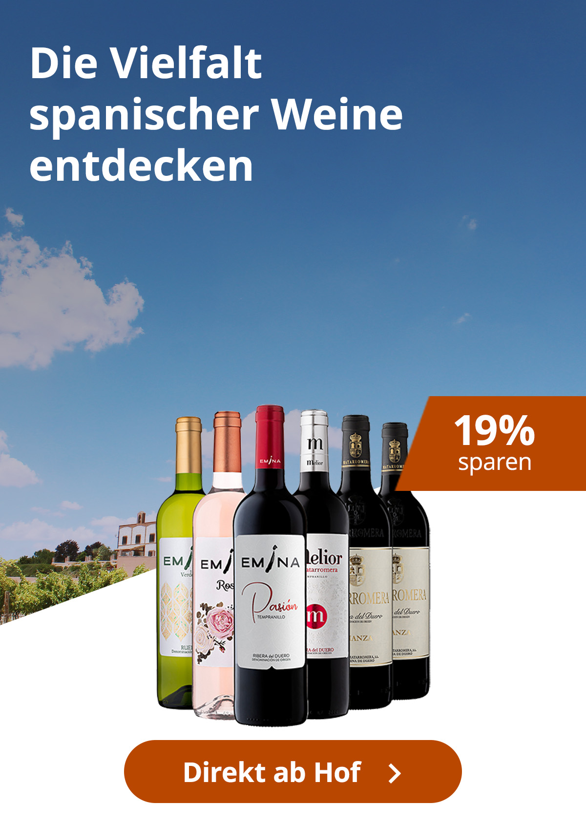 Von Nord bis Süd, von den Bergen bis zum Meer, sind die spanischen Weinregionen ein wahres Geschenk für Weinliebhaber und Entdecker. Mit einer jährlichen Weinproduktion von ca. 40 Millionen Litern auf 941.000 Hektar verfügt Spanien über die größte Weinanbaufläche der Welt. Die spanische Rebfläche ist etwa 7 mal so groß wie die deutsche. Jede Region erzählt ihre eigene Geschichte und präsentiert ihre eigenen Aromen, die die reiche Vielfalt der spanischen Weinwelt widerspiegeln. Tauchen Sie ein in diese Welt der Geschmäcker und Aromen und entdecken Sie die Essenz Spaniens durch seine außergewöhnlichen Weine.