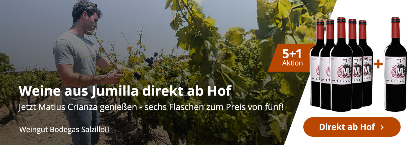 Strohgelbe Farbe, sauber und hell, es ist verführerisch und elegant. Aromen von grünen Zitrusfrüchten wie Grapefruit, exotischen Früchten und weißen Blumen. Am Gaumen ist er ausdrucksvoll, rei...Murcia9,00 € 12,00 €/L (0,75 L) - 2023 Matius Blend Crianza 12 meses Jumilla DO trocken - Bodegas SalzilloBodegas Salzillo2023 Matius Blend Crianza 12 meses Jumilla DO trocken