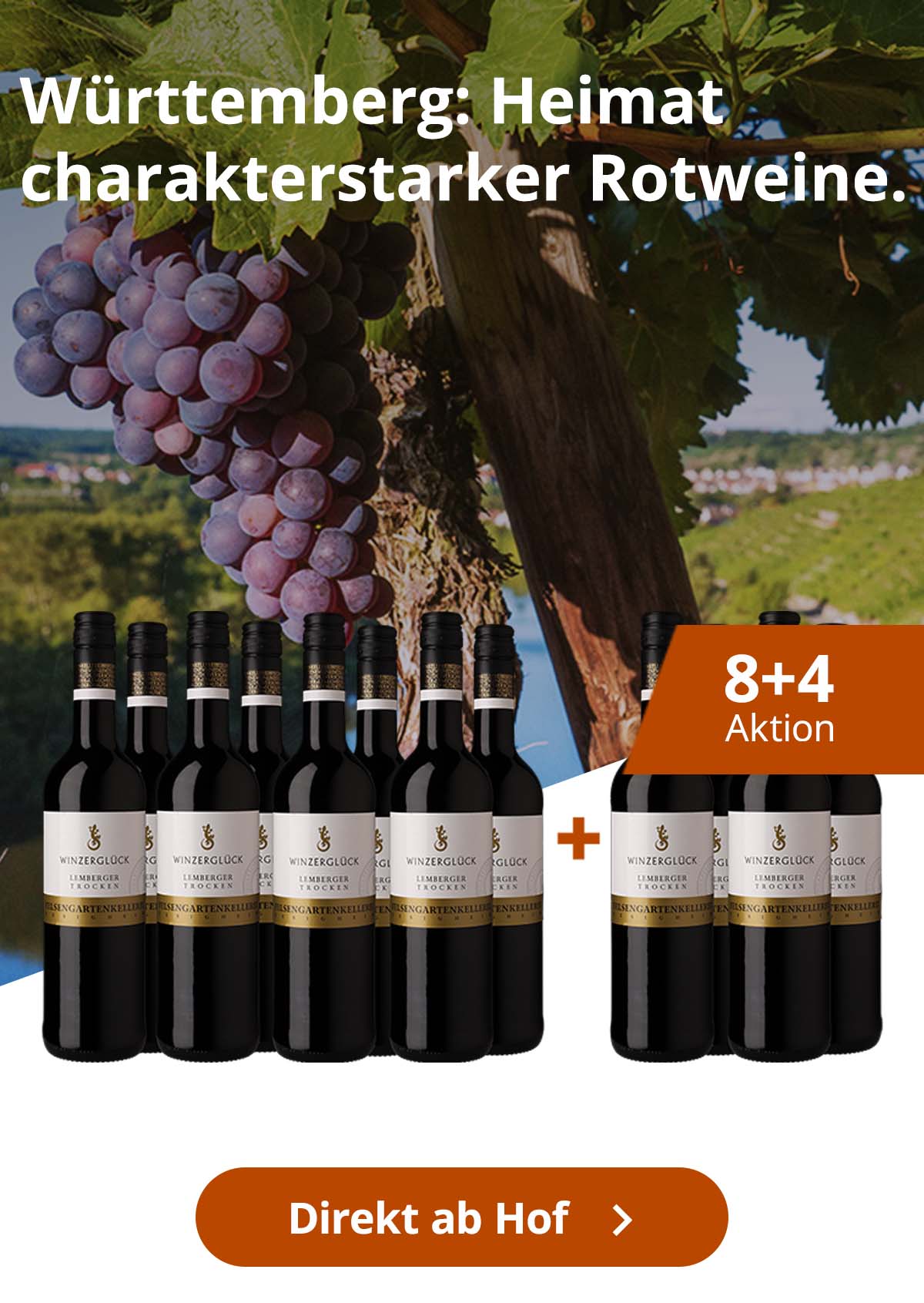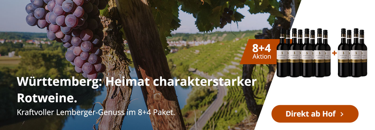Im Holzfass gereiftWürttemberg80,00 € 26,67 €/L (3,0 L) - 8+4 Paket Winzerglück Lemberger - Felsengartenkellerei Besigheim8+4 Aktion0€ VersandFelsengartenkellerei Besigheim8+4 Paket Winzerglück Lemberger